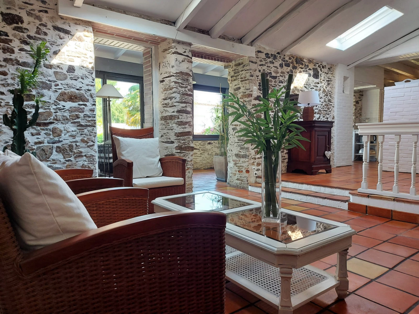 Amoureux de la belle pierre, c'est l'intemporelle LONGERE dont vous avez toujours rêvé ! Découvrez cette propriété construite de PLEIN PIED et rénovée avec soin. Elle se compose d'un séjour avec cheminée, salle à manger, bibliothèque, cuisine, 4 chambres, salle de bain proposant ainsi 172 m2 d'espace de vie familiale et offrant une atmosphère chaleureuse et authentique. Vous souhaitez encore plus d'espace ? Une dépendance de 25m2 environ avec WC et salle d'eau n'attend que vous pour exprimer son potentiel. Vous trouverez également sur la propriété un spacieux garage de 50m2 ainsi qu'un appenti/atelier. Bâtie sur un terrain de près de 1800m2, profitez à l'extérieur d'un magnifique jardin paysagé et piscinable, délassez-vous sur la terrasse et appréciez le confort de la cuisine d'été. Nul doute que vous tomberez sous le charme de ses palmiers et de sa glycine en fleurs. Dans un environnement calme et résidentiel, idéalement située entre Nantes et Cholet, desservie par les transports en commun et à moins de 2 min des commerces de proximité, cette maison sera un cocon idéal pour votre famille. Alors n'attendez plus et contactez-moi au 06 62 68 34 98 ! Honoraires : 3,3% TTC de 669 800 EUR (prix de vente honoraires exclus). Soit 691900 EUR honoraires inclus. Honoraires à la charge de l'acquéreur. Nos honoraires sont consultables sur : www.noovimo.fr. Ref : RDU-HG-8R. Rosalie Durrleman 06 62 68 34 98 rdurrleman@noovimo.fr, votre agent commercial Noovimo inscrit au RSAC de Nantes sous le No 881553523 - Annonce rédigée et publiée par un Agent Mandataire -