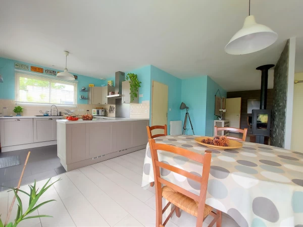 Vous recherchez une maison récente et économe en énergie, bien desservie par les transports ? Découvrez ce charmant PLAIN-PIED non mitoyen et sans travaux à prévoir. Construite en 2014, la maison bénéficie encore de ses garanties décennales. Elle se compose d'un BEL ESPACE DE VIE d'environ 50m2. Vous apprécierez son séjour lumineux, ouvert sur le jardin, et la convivialité de sa cuisine américaine aménagée et équipée. Côté salon, le POELE A BOIS vous apportera une douce chaleur en hiver. La maison dispose également de 3 CHAMBRES de 10m2 avec placards de RANGEMENT, une salle de bain avec douche à l'italienne et baignoire, 2 WC et un espace cellier/buanderie. Sur la parcelle, vous disposerez de 3 places de stationnement extérieur et d'un jardin sans vis-à-vis ; une dépendance de 30m2 pouvant servir d'atelier/stockage/abri et une parcelle complémentaire de 400m2 de jardin peuvent être achetées en plus. Econome en consommation énergétique. Raccordée à la fibre. Tout à l'égout. Situé au calme dans son village, à proximité de l'axe Nantes-Cholet, la maison est idéalement desservie par les TRANSPORTS EN COMMUN. Ramassage scolaire et ligne de bus régulière pour Nantes avec 20 rotations/jour desservant les lycées. Gare à 4 min.
