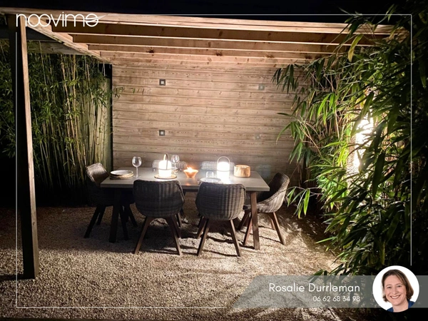 Dès l'entrée, cette maison donne une vraie sensation de déconnexion. Moderne et baignée de lumière, elle se vit autant dedans que dehors. Les espaces s'ouvrent naturellement sur la terrasse et la piscine, avec une agréable pergola ombragée pour profiter des beaux jours à toute heure.