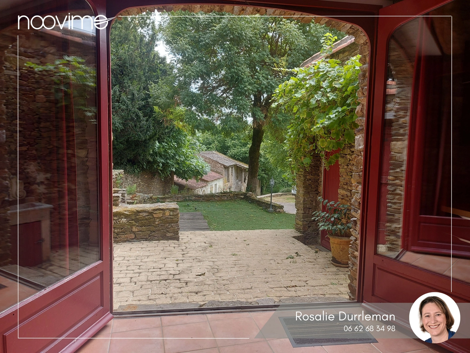 Au rez-de-chaussée : un salon chaleureux avec cheminée, poutres et murs en pierre, une cuisine authentique et conviviale, ainsi qu'un ancien garage transformé en 2 studios indépendants (non occupés à ce jour).